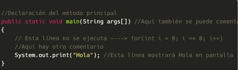 Ejemplo comentarios en Java de una sola línea: