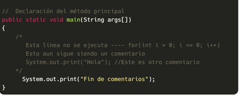 Ejemplo comentario en Java de múltiples líneas: